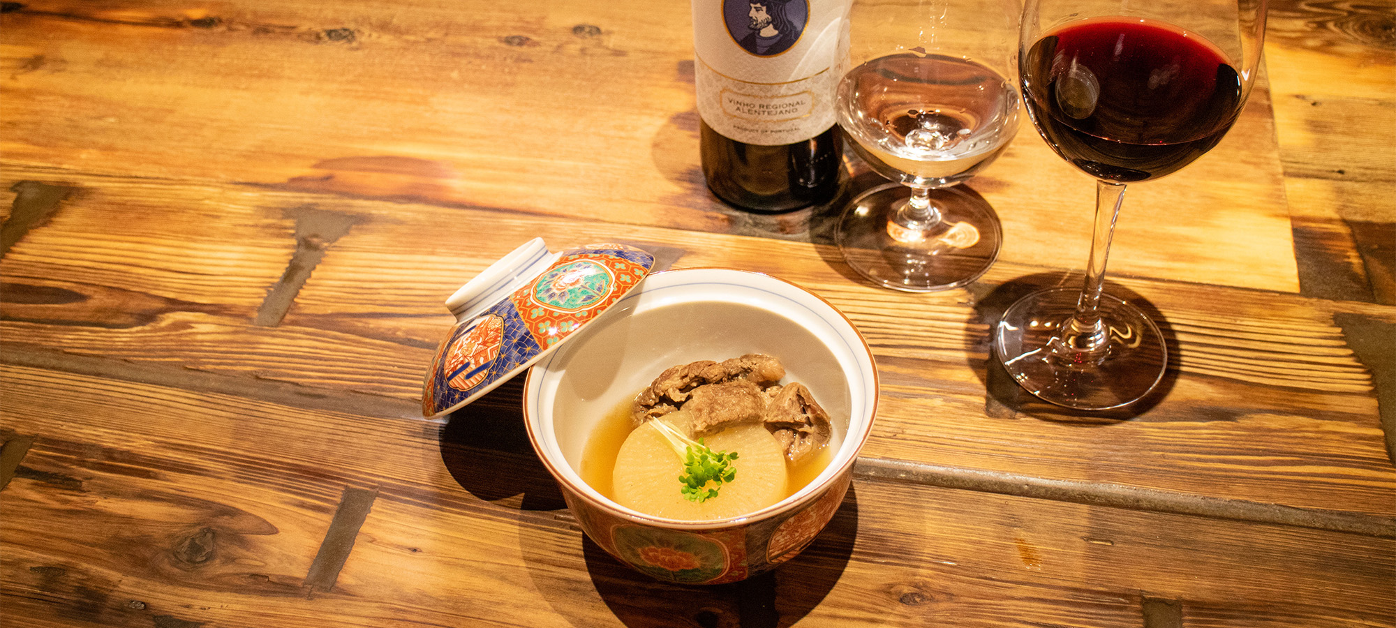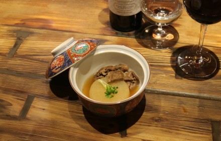 | お椀 | お肉の前菜三種 | 牛大根 | メイン | 箸休め | 土鍋ごはん |